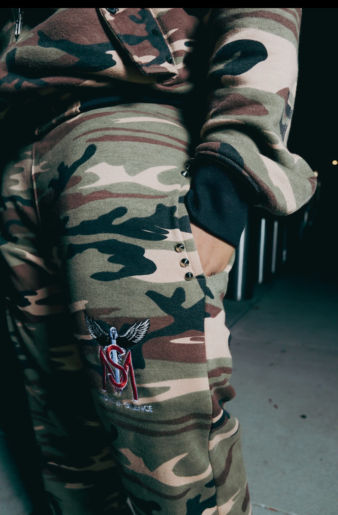 Crafted for those who move with purpose, the Silent Forces Camo Set embodies the spirit of discipline, heritage, and silent dominance. Designed under the Move In Silence 365 Academy™, this limited-edition release blends military-inspired confidence with high-end streetwear precision.